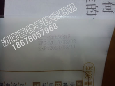 百特T-100B高清手持噴碼機是國內(nèi)首家采用英國技術(shù)生產(chǎn)的全內(nèi)置充電式智能型噴碼機,在國內(nèi)手持噴碼機行業(yè)中處于最領(lǐng)先技術(shù)! 國內(nèi)首創(chuàng)速干墨、油性墨技術(shù),填補了該行業(yè)在國內(nèi)的空白,國內(nèi)首創(chuàng)噴頭朝下噴印技術(shù),突破了手持噴碼機只能水平噴印的局限,采用模塊化外殼,克服了手持噴碼機零配件式的組裝方式所產(chǎn)生的諸多弊端,噴碼機墨水安裝方便快捷,克服了以前噴碼機墨水安裝時漏墨、不出墨的缺點。液晶顯示屏可滾動顯示打印內(nèi)容,本噴碼機采用 USB通訊接口,噴頭分辨率為 200dpi ,電池為日本進口三陽鋰電池,可在一系列的多孔和半孔物體表面進行噴印,如細木工板、木工板、板材、鐵桶、鋼桶、油漆桶、人造石、石材、木箱、塑鋼、石膏板、木地板、鋼管、薄膜、塑料膜等。本手持噴碼機具有一機多用、清晰度高、性能穩(wěn)定,噴印速度快、使用壽命長,字跡清楚、耗電量小,耗材經(jīng)濟 , 操作簡便等多種優(yōu)點,體積較小,充滿電后在無電場合進行可連續(xù)噴印 10 小時以上 , 噴碼機采用了外置墨盒,全封閉式墨路,快速換墨盒,絕不浪費一滴墨水。
